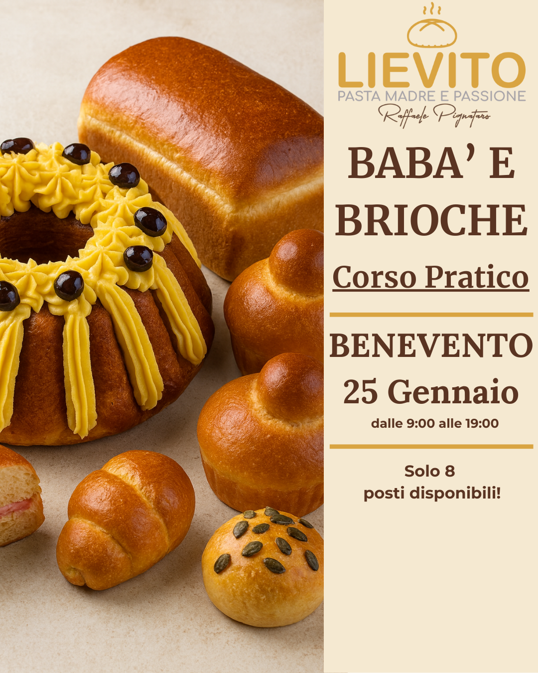 Un corso pratico, mani in pasta, dove ti sporcherai di farina realizzando gli impasti sotto la guida di Raffaele Pignataro, docente di lievitati con oltre 10 anni di esperienza e decine di migliaia di studenti all’attivo in tutta Italia.